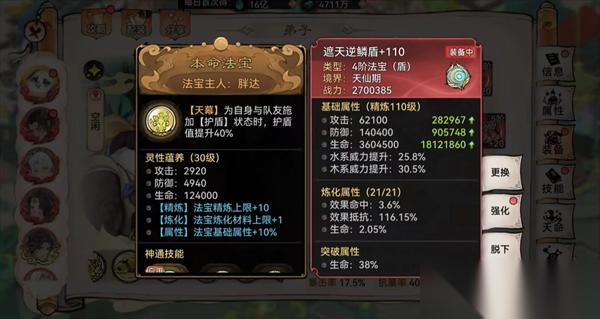 现在该来说说看我们的黑科技了,套盾流熊猫法宝选择只有一个,那就是带鳞的遮天盾胚。(推荐四阶水麟+三阶藤进行制作,炼化全部效果抵抗)
