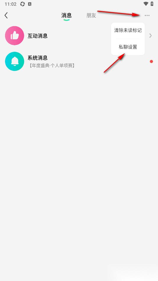 3.再在当前打开的窗口中,将右侧上方的【…】点击一下选择【私聊设置】选项点击进入。
