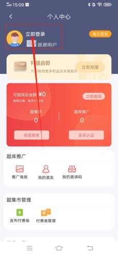 2、这样我们就进入到个人中心中,点击下面的“立即登录”;