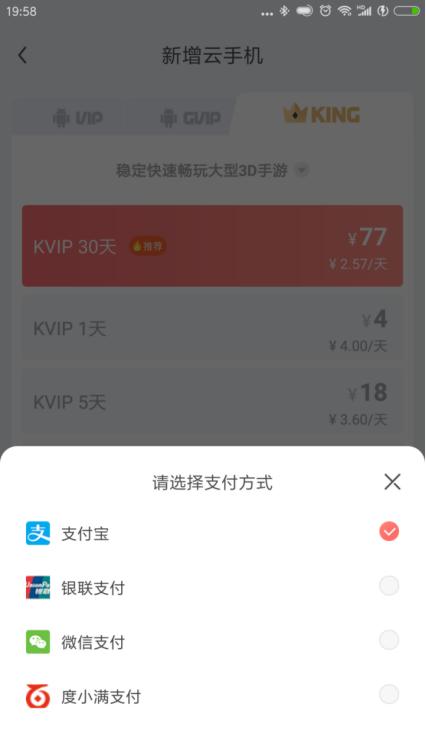 选择支付方式,并阅读《红手指VIP会员服务协议》或者《iPhone云手机协议》,点击“确认支付”,并完成支付。