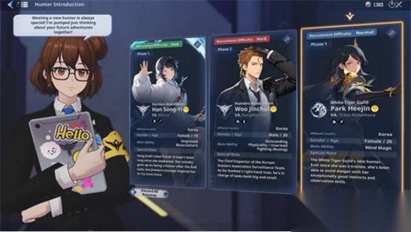 完成教程且解锁猎人公会后,能够直接获取三名免费猎人。