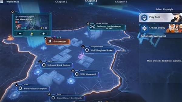 在大厅通过世界地图选择传送门任务。