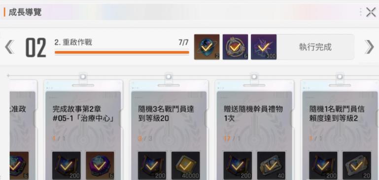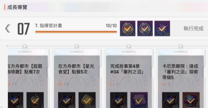 那么在第七阶段的交易计划里面,大家就可以了解到自己长期的规划以及其中资源的分配,而且任务里面还有一些引办需要升级到50级,信赖度达到10级这类要求,通过这类要求大家可以持续积累到更多的资源,这个阶段的话,大家不要去急着完成任务,因为很多日常活动是需要几天才能够完成的,任务当中涵盖了各种角色训练、典藏互动,还有模拟演练的难度挑战,所以在多个维度当中,大家推动任务完成的话,可能需要一些时间。