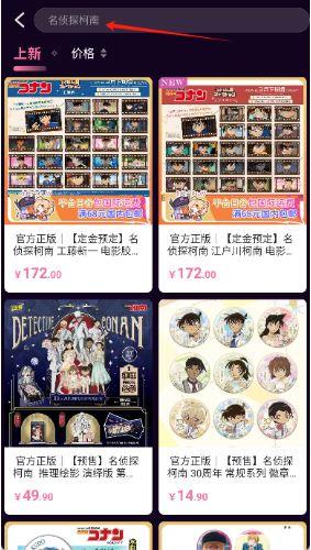 1、输入二次元产品名称搜索,相关信息如价格等即展示。