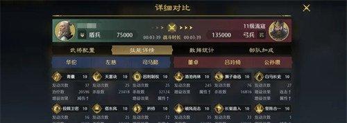 比如说华佗这里可以带的是轻兵急行、乐善、奋鼓,而左慈的话可以带并气积力、活力、固阵,如果是张角的话,这里可以带的兵法是惜兵爱民、活力、固阵之类的兵法,有足够的兵法加成,可以为这个阵容带来足够的标准提升效果,相应的初期变化角度来说的话,其实它带来的整体能力效果上面是非常适合参与前期开荒的,在战报里面大家也可以看到它的一些详细对比,以及其中胜利的概率有多大。