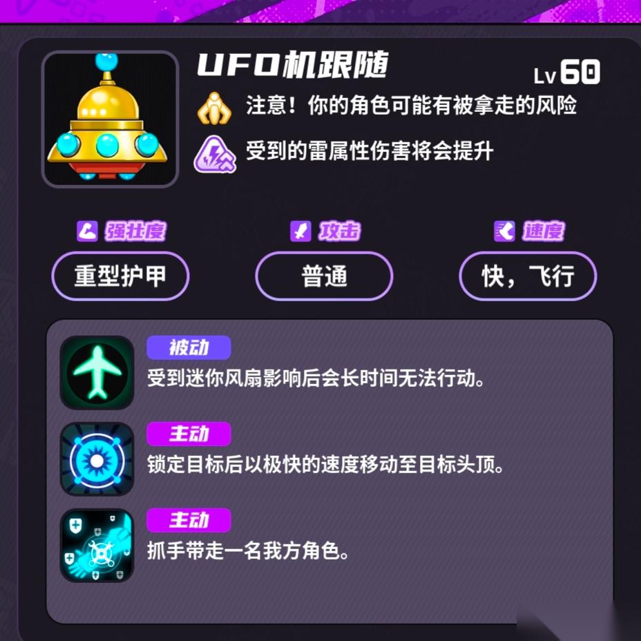 ②UFO机(普通的只能抓取一次,没抓到角色也会随之退场,金色的可重复抓取,抓取到角色或被击败退场,大师难度只会出现金色),随机抓取角色,如果抓到月兔等便宜角色可适度放手,抓到其他关键角色可通过换位重置抓取角色,争取处理掉的时间。月兔等投手可在空中对其造成伤害,其余角色仅在进行抓取时可造成伤害。风扇、可可乐/塔菲、女王、月兔大招等控制技能也可快速打断,魅魔大招策反也行。