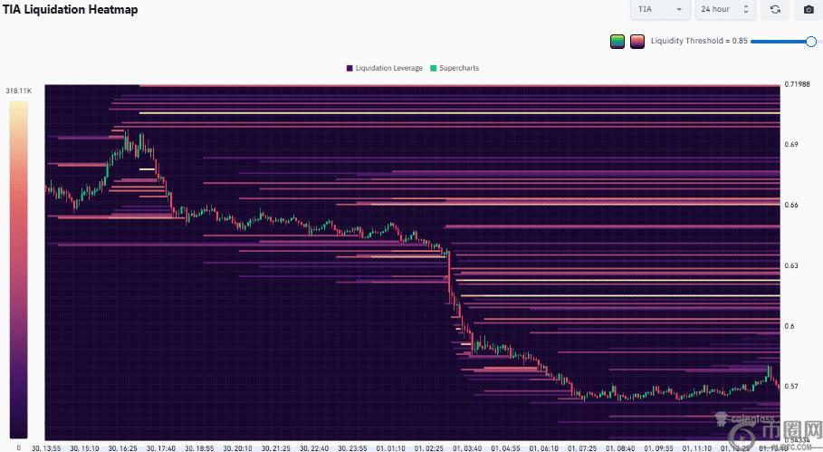 根据价格走势图,TIA跌破了持续约10天的关键横盘整理区间。Celestia的价格暴跌至0.60美元的支撑位,但似乎在0.56美元附近构筑了底部。