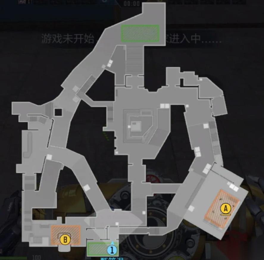 作为防守方,最重要的是要抢占先机,所以在倒计时结束的那一刻保卫者可以立即从出生点走小道前往A包点,利用A包点二楼的视野优势观察敌方动态。如果对方没有在第一时间前压,则以1~2名保卫者进行常规防守即可,甚至可以不时进行点射威慑对方。