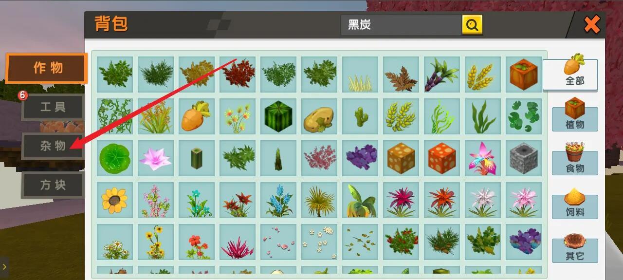 1.按B键打开背包,左侧列表点击杂物按钮。