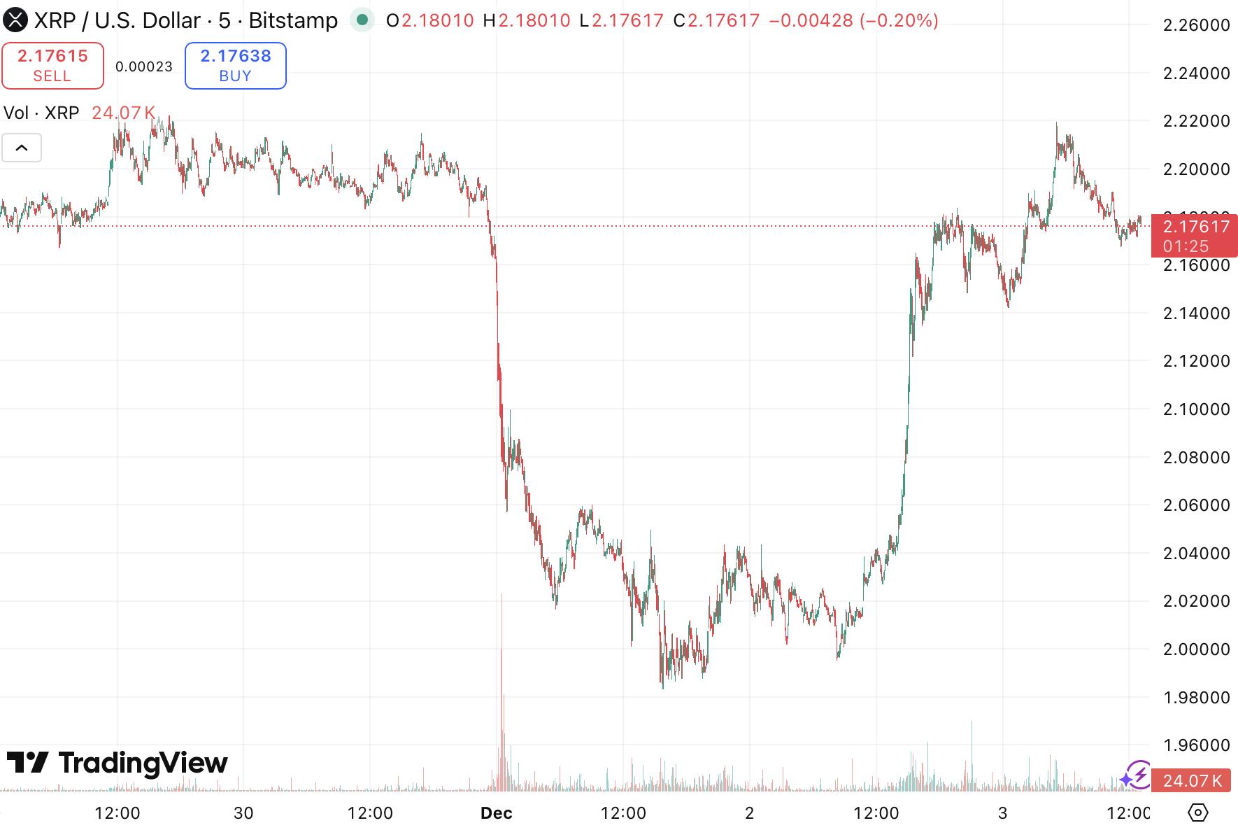 XRP 继续在 2 美元支撑位上方交易。该价位在多个时期都发挥了稳定作用,仍然是交易者关注的焦点。