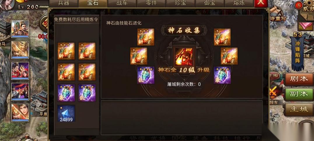 精炼系统可以稳定提升装备基础属性,建议优先处理主力武将的装备。宝石镶嵌则提供了针对性的增强方案:攻击型武将适合暴击和攻击宝石,防御型武将则更需要生命和防御宝石。