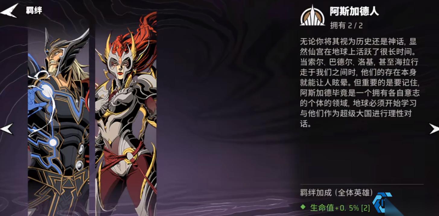 当雷神之锤与天使之翼在战场交汇,阿斯加德的古老力量即刻苏醒。这个看似简单的阵营羁绊,实则蕴含着改变战局的强大潜力。只需要集结雷神和安吉拉两位神域英雄,就能激活这份跨越维度的连接,为全队带来0.5%生命加成的坚实保障。随着战局推进,这份羁绊将迎来新的成员——诡计之神洛基与死亡女神海拉。他们的加入不仅丰富了阵容搭配的多样性,更将阿斯加德的力量推向新的高度。虽然单看数值加成并不惊人,但这恰恰是构筑坚固防线的基石,为整个队伍提供了持续作战的底气。