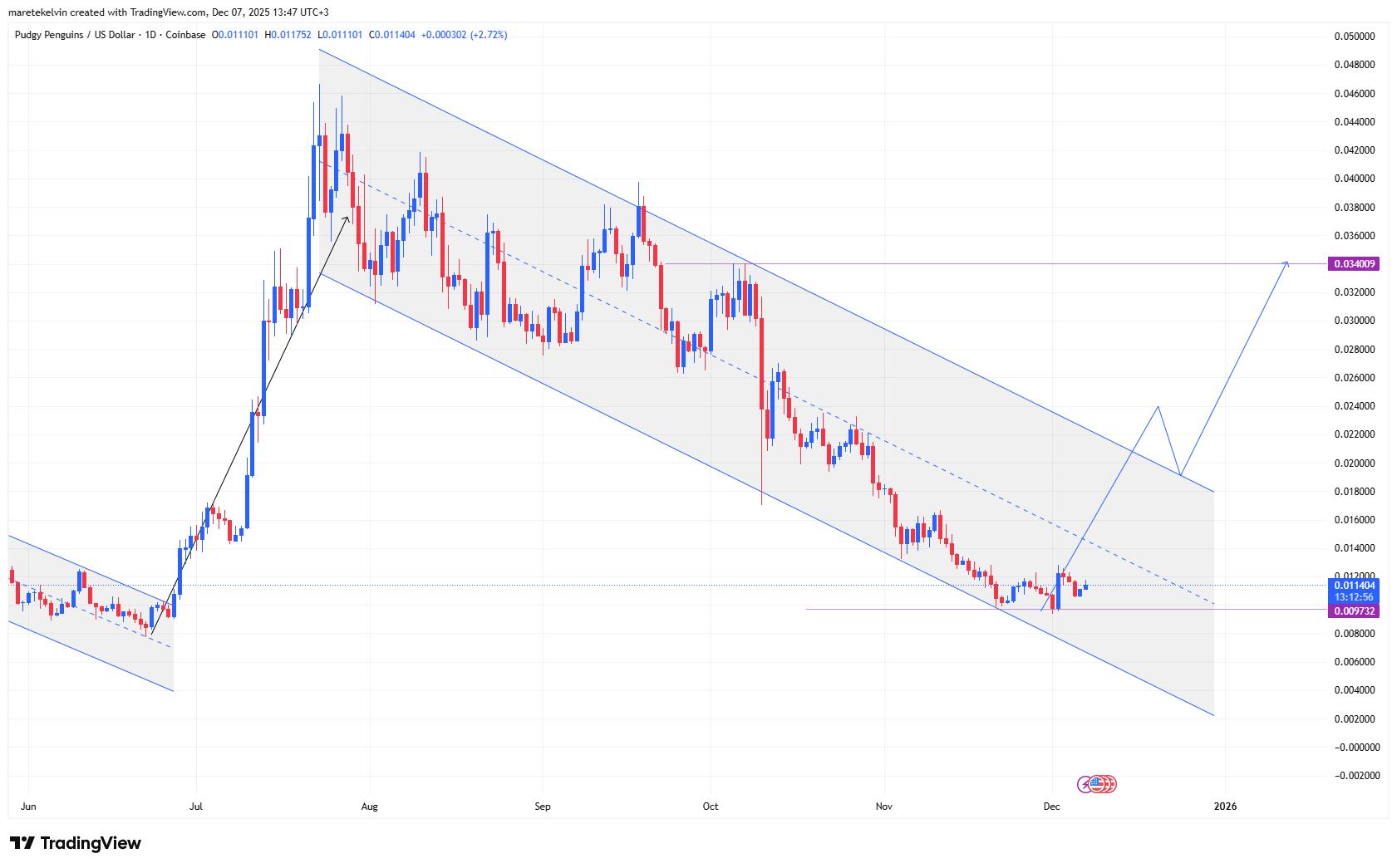- PENGU 的反弹使该代币重新回到了交易者可以再次关注的位置。