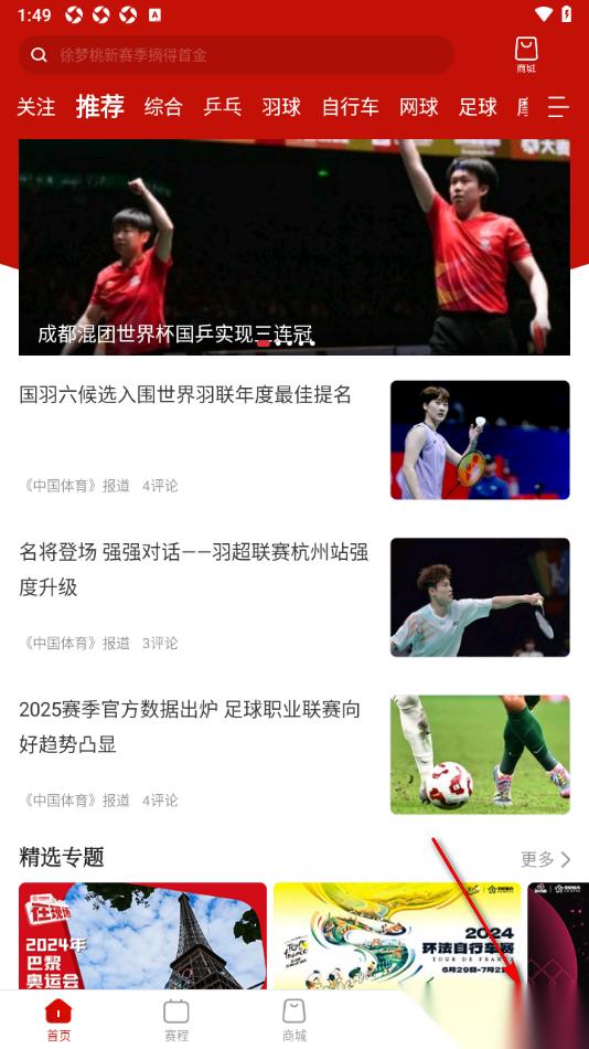 一些用户在使用中国体育app这款软件的过程中不喜欢频繁的接收到该软件中的精选推送资讯,那么用户可以根据上述的步骤教程来操作即可,除此之外该软件还支持设置退出直播间小窗播放、后台音频播放、一键清除所有缓存数据等内容,具体的教程方法用户可以来操作试试。