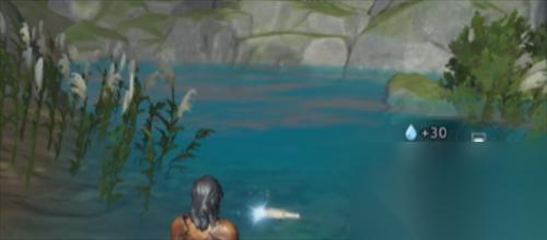 玩家们可以先去将漂流瓶宝箱进行获取,漂流瓶宝箱地址在沃维森林南岸某个小岛屿的上面,具体位置更靠近于南北两岸的大河附近,并且这条小河周围有着非常鲜明的红树林,到达地点后,玩家们可获得漂浮的瓶子,与其互动就可以直接进行收集,因为位置比较隐蔽,所以在前期玩家们可能会遗漏,所以在玩家们在初期探索时需要更加细致一点。