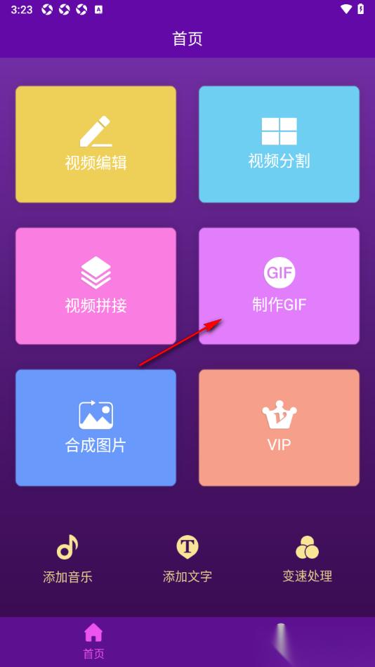 1.点击打开手机上的视频剪辑师app,然后在页面上将【制作GIF】选项点击打开。