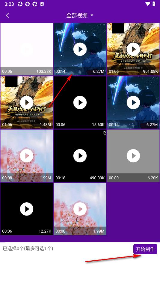 2.在当前打开的页面上选择喜欢的视频素材,然后点击下方的【开始制作】。