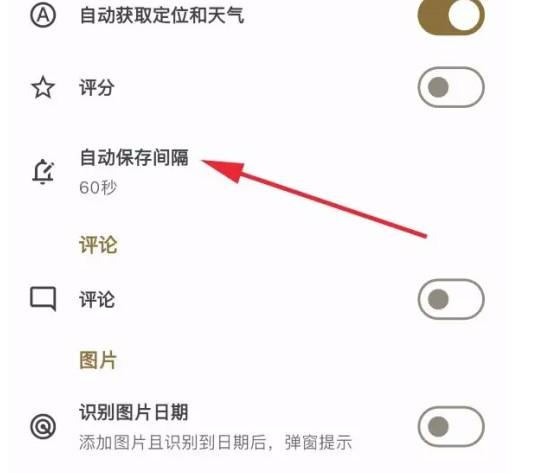 接着,在打开的日记个性化页面,点击【自动保存间隔】按钮。