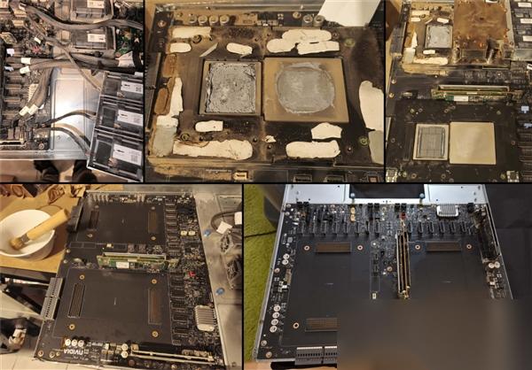 但David Noel Ng还是决定亲自驾车前往卖家处检查,确认卖家信誉良好后,他将系统带回家,随后进行了一系列繁重的修复工作,包括彻底清洁、重新安装水冷设置,并解决了导致服务器反复崩溃的故障温度传感器。