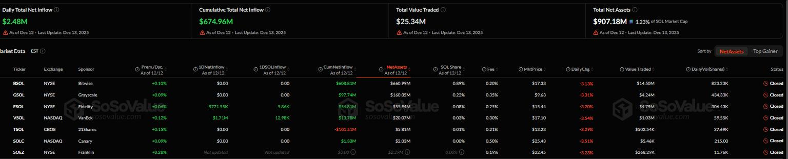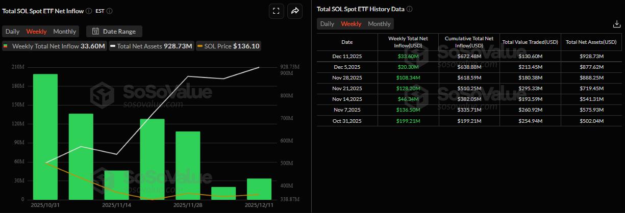 Solana价格预测:现货ETF资金流入接近10亿美元,表明机构逢低买入,SOL价格盘整。