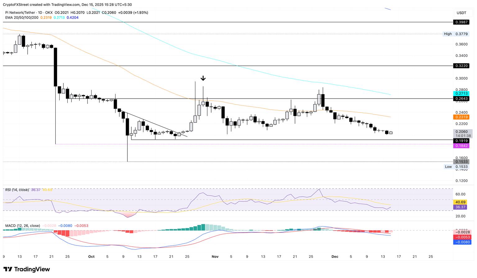 如果 PI 跌破 0.1919 美元,则可能测试 10 月 10 日的低点 0.1533 美元。