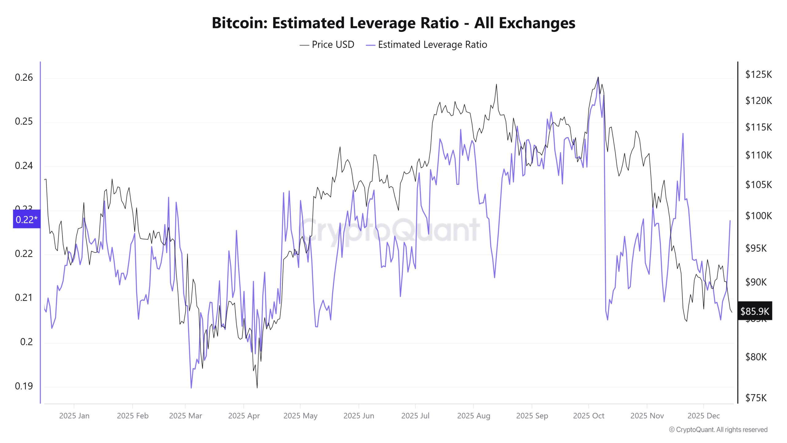 同样,预计杠杆率(ELR)指标也从12月10日起出现大幅上升。该指标衡量的是交易所的未平仓合约量除以其代币储备。