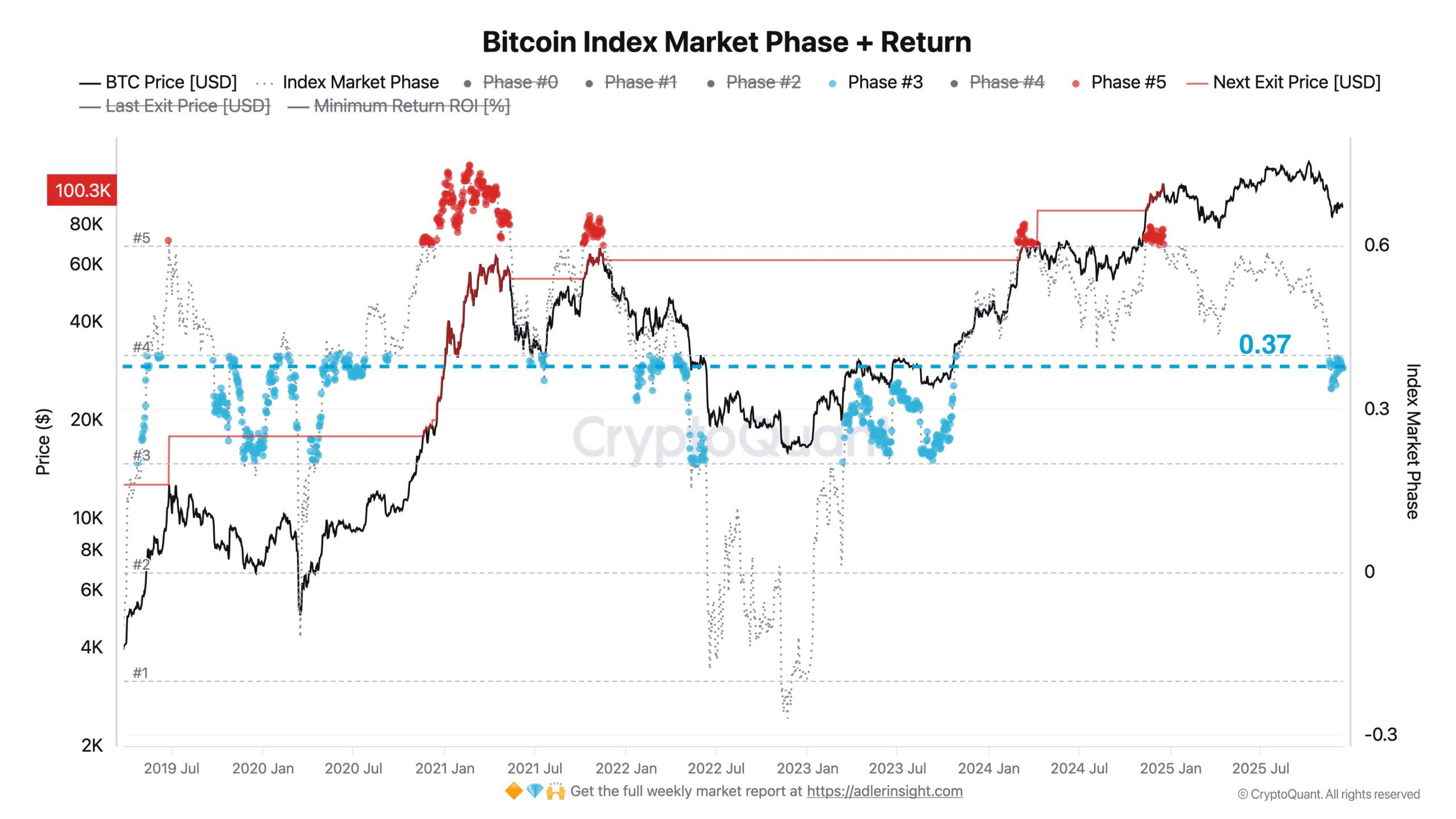 链上分析师阿克塞尔·阿德勒注意到市场阶段指数保持在0.38附近。这解读为“维护过渡政权“抛售压力并未加剧,但也没有出现可持续的复苏。”
