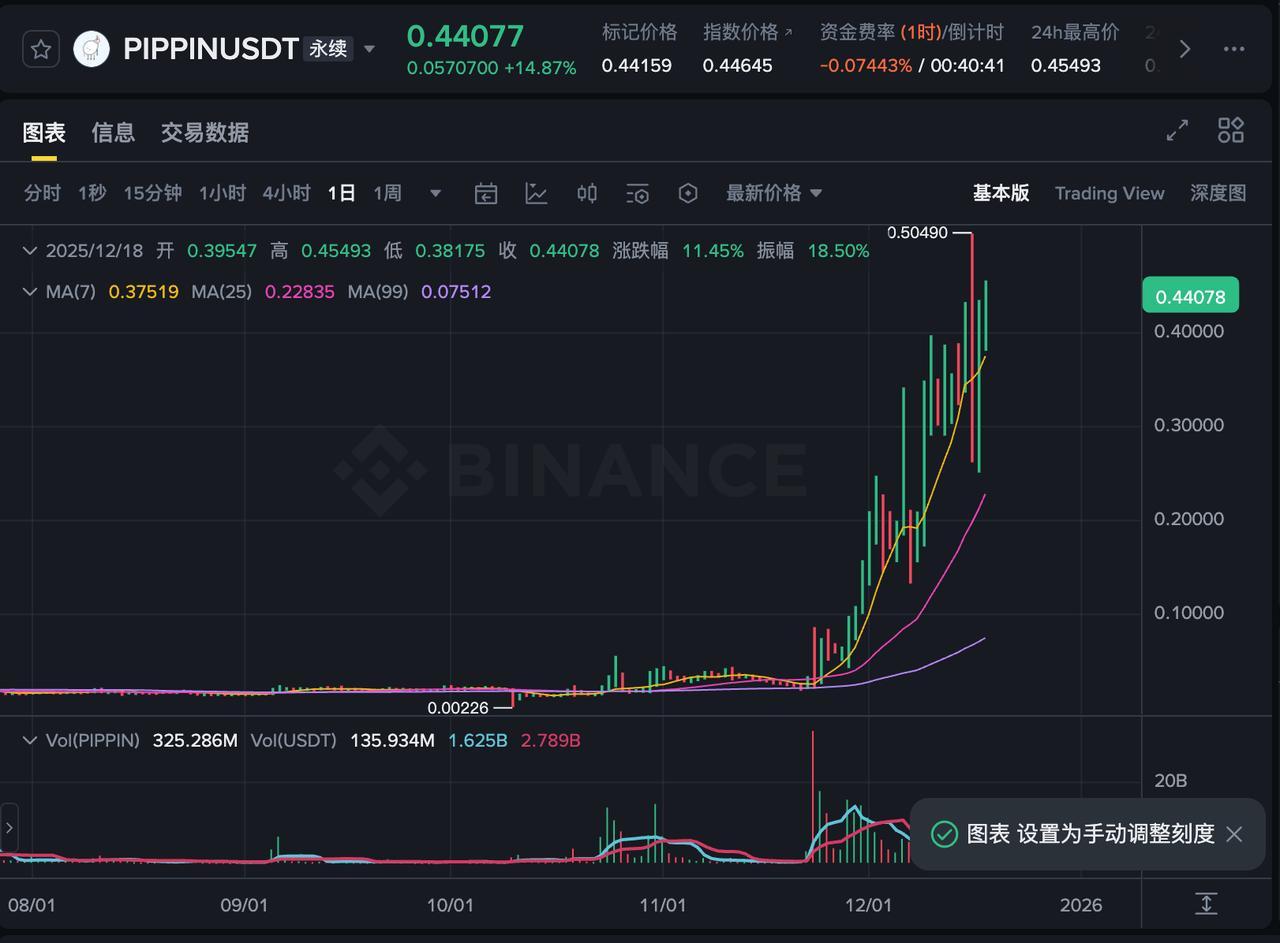 截至撰稿时,PIPPIN 价格暂报 0.44 美元,24 小时涨幅超 15%,它的表演还在继续。