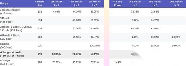 第二 综合甜甜圈可以以更低的数值刷出lv3的第二技能(统计结果里面 单口味甜甜圈不到700都是出不了lv3第二技能的 也就不可能有双lv3)。