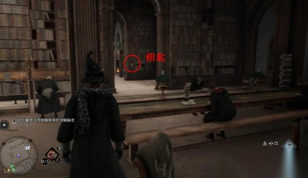 传送至图书馆在左前方的书架之间找到钥匙