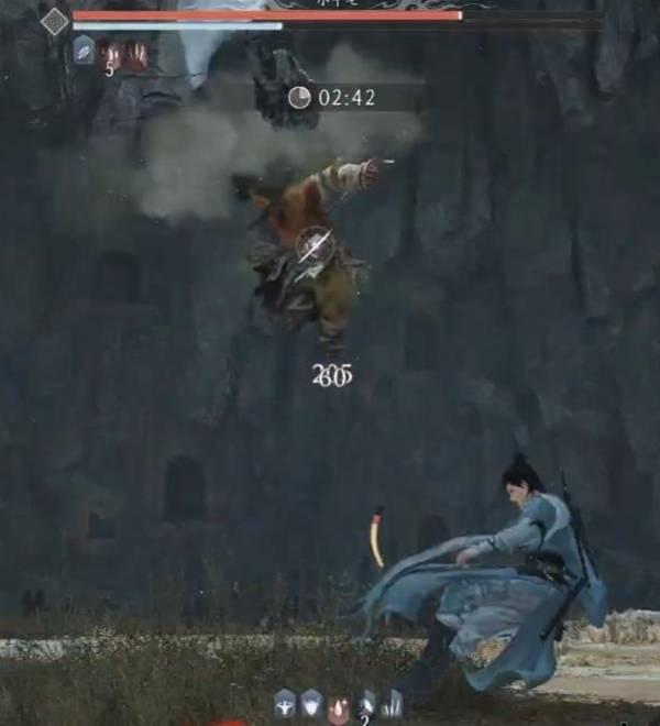 回转一圈敲地板爬行:看到他跳起来后,向后回避一次拉开一个身位距离,接着秒蓄秒放,整个流程就这个比较需要熟悉掌握,如果真不行可以在他冲过来的时候二段挑回避。