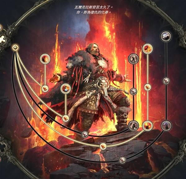 碎裂恶意(女王矛自带技能)- 焚躯烈焰2 - 怒火锤炼2 - 元素武裝2 - 野火(刷图)/ 长明烈焰2(高难攻坚使用)