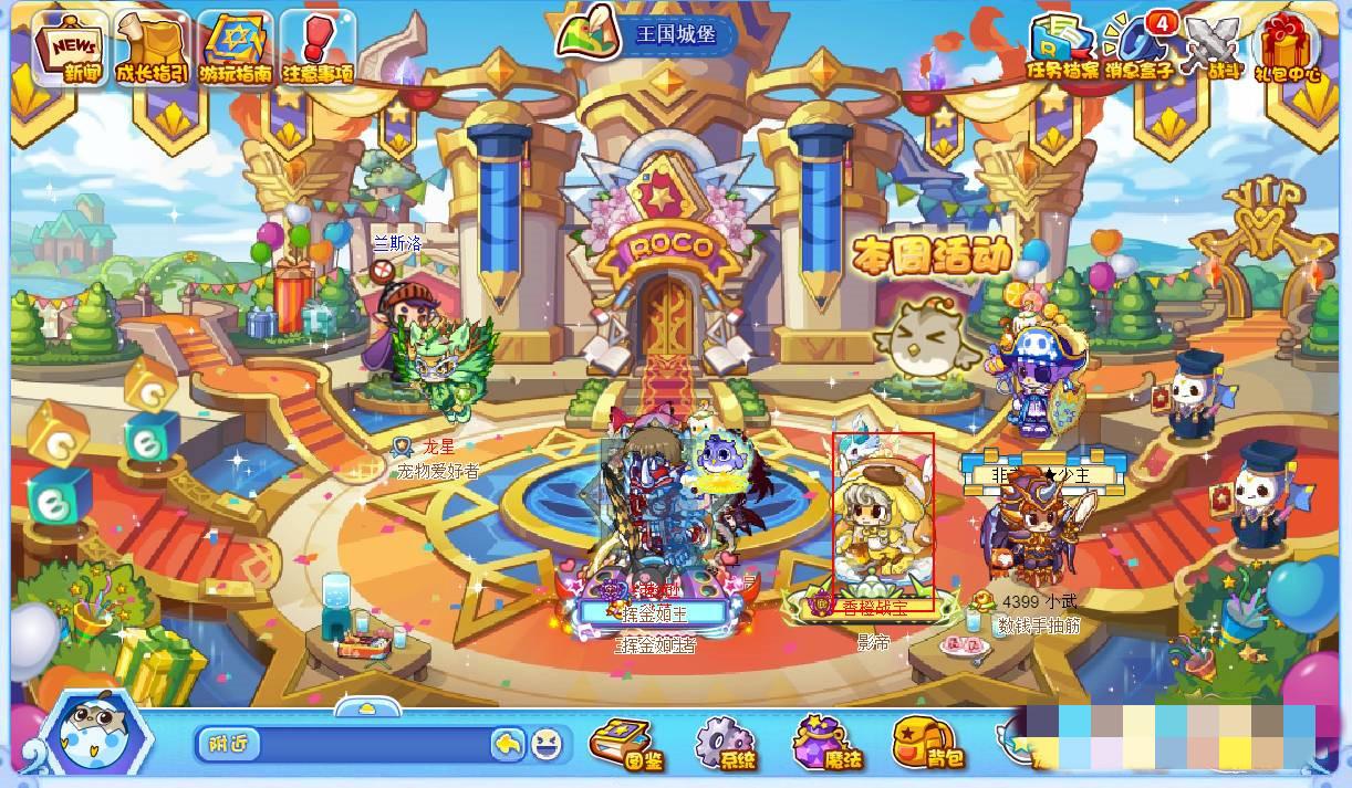 1.首先,玩家需要和qq好友进入洛克王国游戏的同一个服务器,然后点击qq好友游戏中人物。