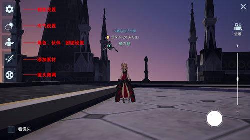 相机系统里面包含几大类的功能: 相机设置、 天气设置、 角色、伙伴等动作设置、 添加素材功能、 镜头的微调功能。
