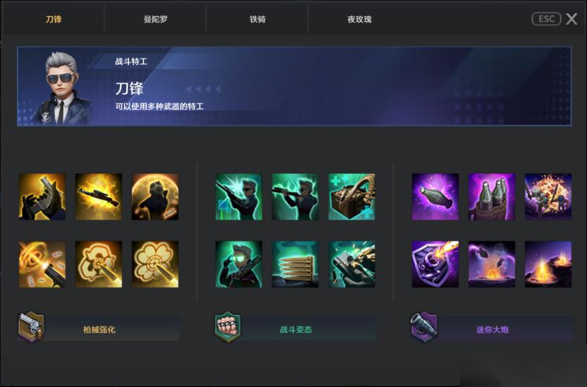 模式共引入了四位拥有专属技能与成长路径的特工角色:擅长枪械操控的刀锋、专注精准狙击的曼陀罗,依靠技能制造伤害的铁骑与荆棘玫瑰,四位特工技能侧重不同,也自然带来了差异化的战斗定位。