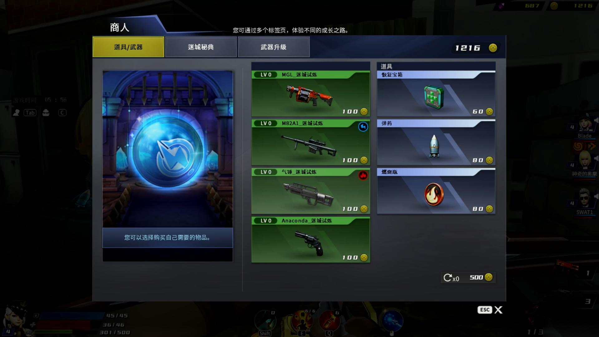 该模式下,玩家在击败敌人后可以获取硬币、经验值、道具、枪械等奖励,硬币可以在商人处购买枪械以及各式道具,或是随机解锁迷城秘典获得不同的BUFF效果、提升枪械等级或变更枪械的属性词条,不断提升战力、完善BD。