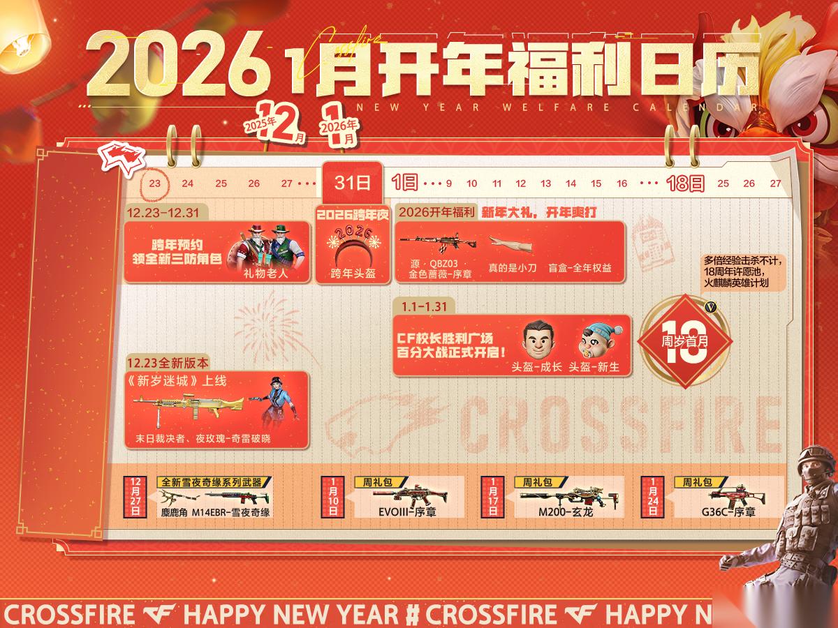福利方面,官方精心规划了从岁末到新年的完整活动线。