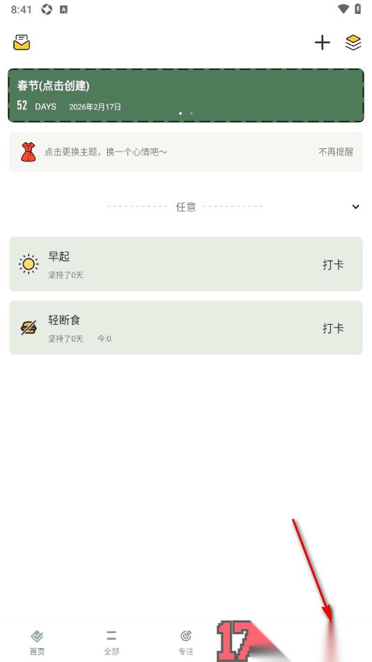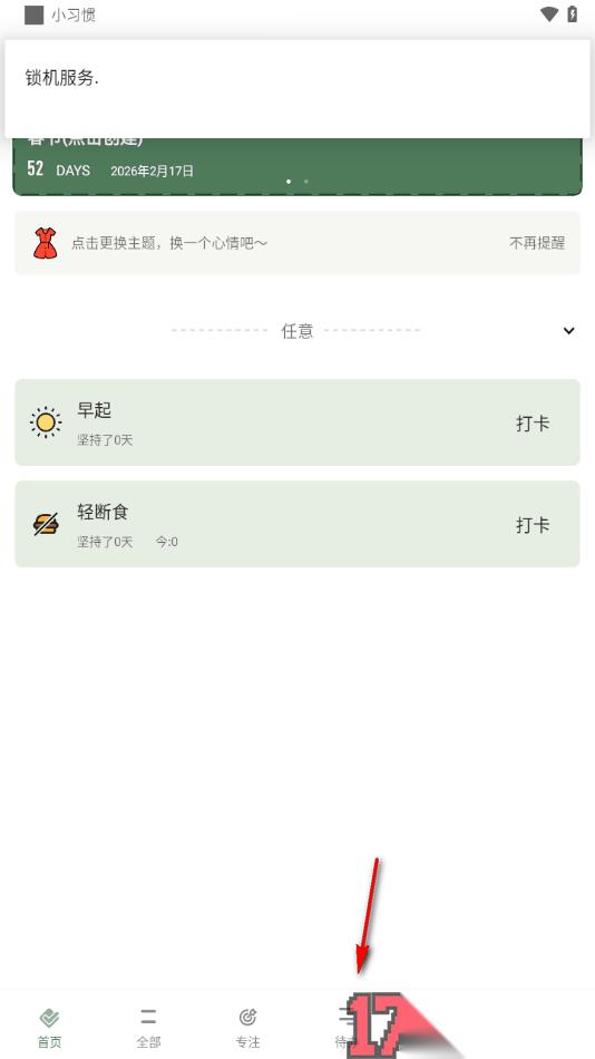 1.在手机上点击打开小习惯app这款软件,在页面下方即可查看到几种功能选项,在这里点击打开我的选项即可。