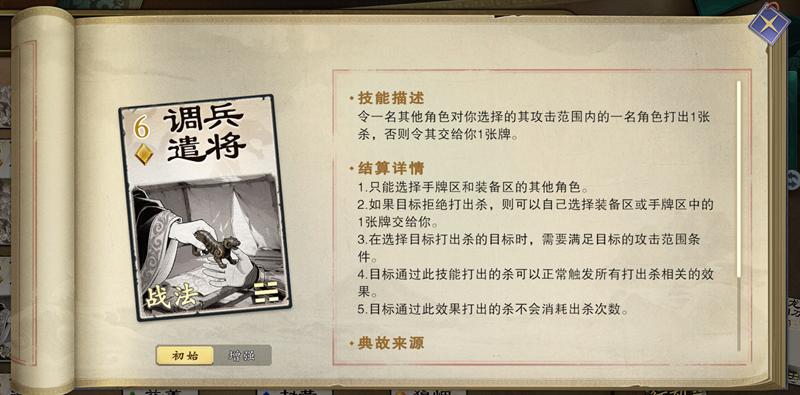 调兵遣将可以让“A角色“攻击“B角色”,相当于是增加一次“杀”的轮次。在实际运用中,如果对方已经没有杀,也可以出这张牌来让对手移交给自己一张牌。