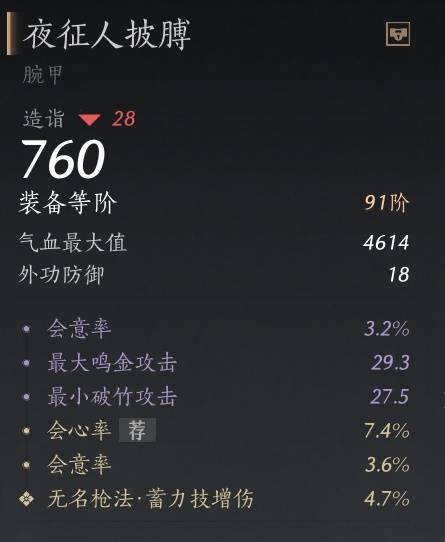 胫甲/腕甲:会心率,会意率,劲,精准率,体,御,最大气血,外功防御
