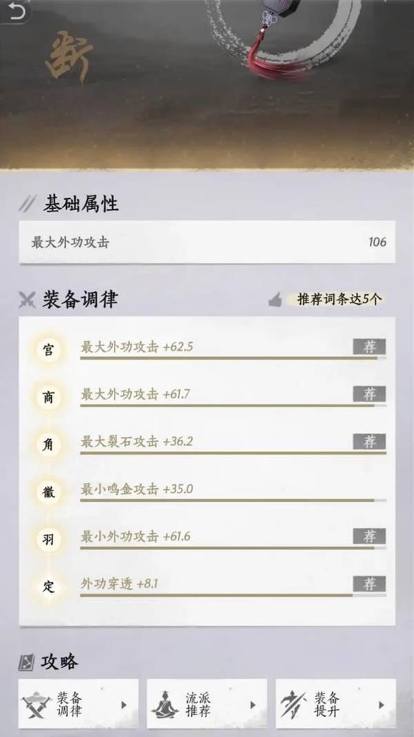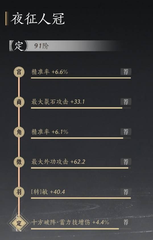举个例子,你的装备A之前几个调律都很顺。会心率,大外,劲,最大裂石都有了,你是玩陌刀的,你就怕下一个出个最大破竹。