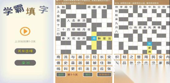 融合传统填字玩法,完整的学科知识挑战与益智模式,从简单到复杂,渐进式难度设计应有尽有,众多关卡都经过精心打磨,确保在挑战时获得无限成就感,拥有极高的新鲜感,游戏中题库有很多,包括语文、历史、地理、众多学科知识应有尽有,以模拟学霸冲刺考试为主要核心获得极强代入感,其中游戏比较注重真实性,通过填字过程来系统性地融入文化、历史典故等特色元素。