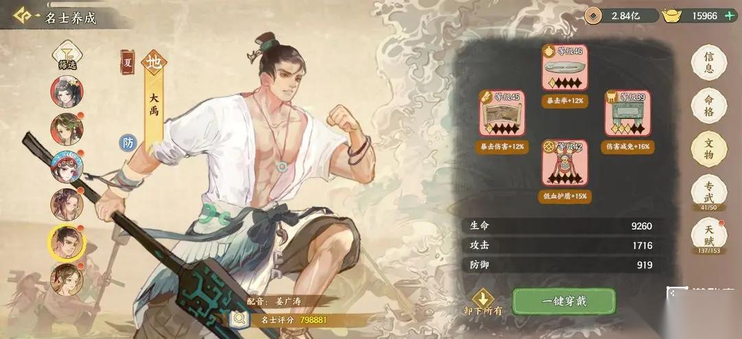 大禹,奇珍异宝带锁子黄金甲,金银铜器带鼎,增强续航能力。