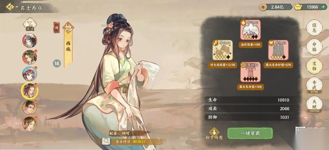 带马王堆帛画和编钟是为了增加西施生存能力,防止没放技能先死了。