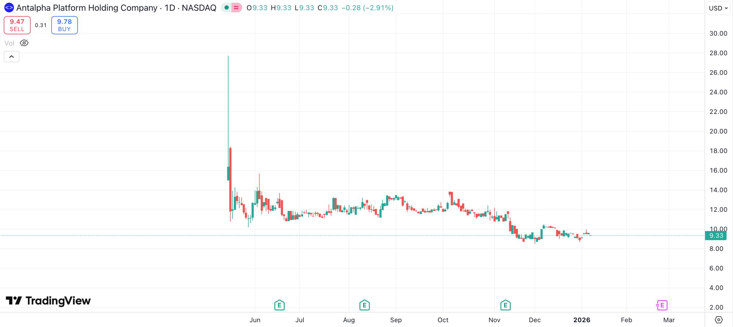 Antalpha 最初与姊妹公司 Northstar 同属詹克团旗下母公司所有,于 2024 年重组后,以「比特大陆核心融资伙伴」身份独立运营,并于去年 5 月 6 日以 12.8 美元的 IPO 定价登陆纳斯达克全球市场。上市首日 Antalpha 股价最高涨至近 28 美元,总市值达 6.6 亿美元,但目前股价已跌至 9.3 美元附近。