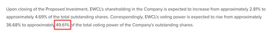 而这份提交的文件,其中的内容就是 EWCL 拟以现金的形式从灿谷联创张晓俊、林佳元手中收购 1000 万股 B 类普通股。B 类股一股拥有 20 票投票权,EWCL 或者我们可以说 Antalpha 甚至说比特大陆,就是奔着收购灿谷控制权去的。
