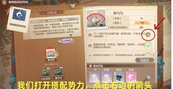 2、点击奥乌乌资料旁的箭头查看线索,地图上会出现黄色圆圈