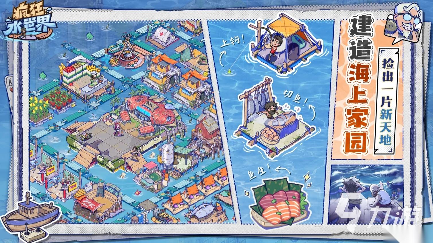 不小心流落到一望无际的海洋上该怎么办,《疯狂水世界》会教各位如何在海上生存。本作的一切都围绕着海洋来进行,人们需要在海上建造起自己的基地,并逐步扩大基地的面积,让自己能在海面上有更多的活动空间,更能在上边搭建房屋,制作出多种不同的设施,还能经营自己的产业,捕捉不同的鱼类制作成食物,亦或是找到泥土让自己可种植瓜果蔬菜,打造出能让自己生存下去的海上家园。