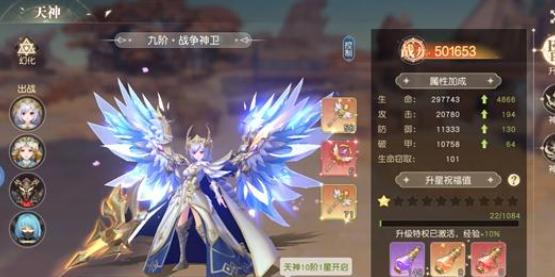 天神变身的核心就在于短时间的战斗力爆发,变身会持续20秒,在这个过程中就能获得对应的比例护盾。搭配专属的技能组,还有攻击模组,不管是清理小怪,还是正面硬刚,都会游刃有余。但需要注意的是,如果变身期间护盾被击破,那就会强制性的结束变身,所以掌握变声的时机还是很关键的。天神本体的养成就是提升战斗力的关键,主要是围绕升级、神器等多个方向展开。天神升级就需要消耗神力精华,积累足够的祝福就能够完成进阶。