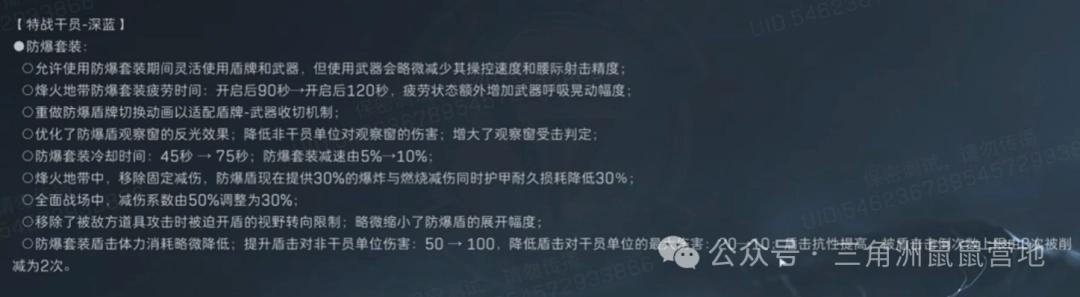 核心技能,具体改动大家自己看,总结一下就是,大招期间可以随时切枪和切盾了,但是有操纵速度和腰射削弱限制(防止贴近切枪腰射太赖皮)。